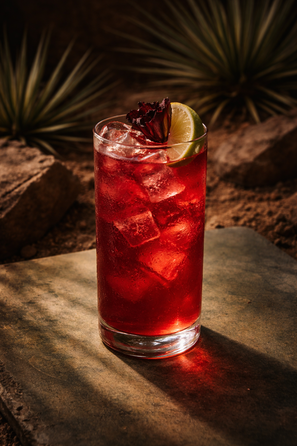 Add sotol plata, jamaica drink, fresh lime juice, and a touch of jasmine drink to a shaker filled with ice. Shake well until chilled and balanced. Strain into a rocks glass over fresh ice or serve up in a coupe. Garnish lightly and serve.